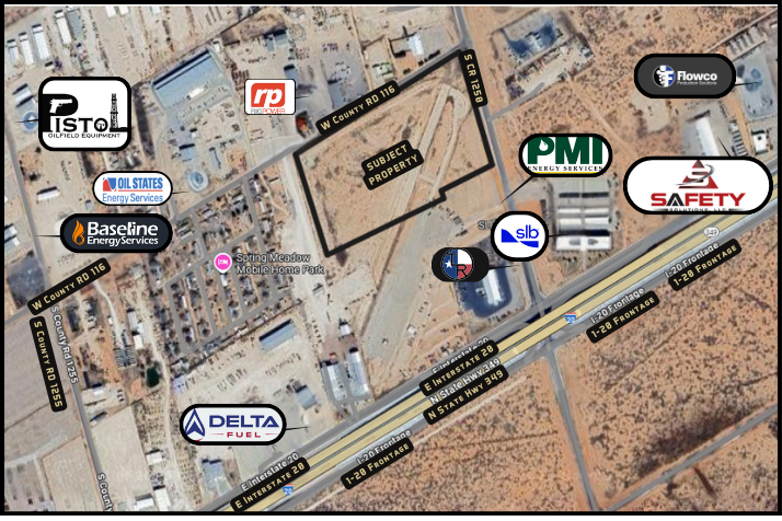 Formerly known as The Desert Thunder Raceway, this approximately 21.98-acre parcel of land can be purchased as a whole or divided into lots (see details below). Located just off Interstate 20, the property fronts South County Road 1250 with approximately 700 feet of frontage and West County Road 116 with approximately 1,230 feet.